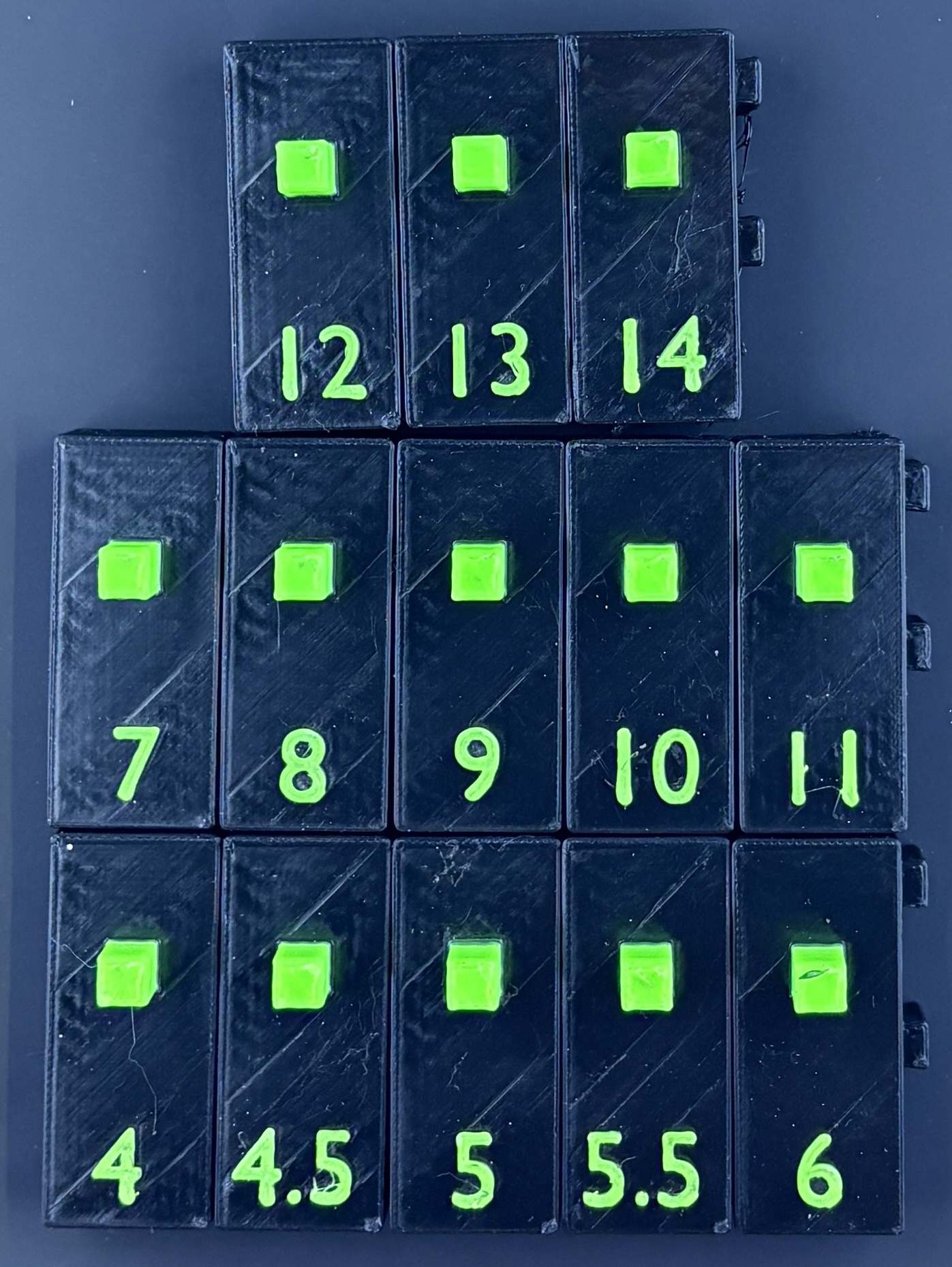 If you want a custom color, please add to notes what colors you would like. Each piece has a magnet inside to help keep it secure in your tool drawer. Contrasting colors with large fonts makes it easy to see and makes it faster to look for exactly what you want. Others will be able to see if you are asking help for someone else to find your tools.