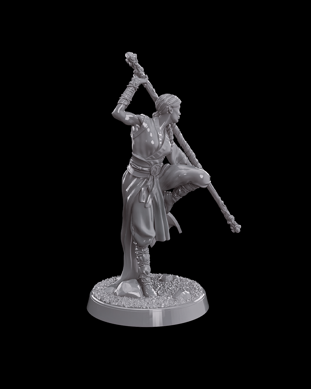 Aluna dos Quatro Elementos, Ayumi canaliza vento, terra, fogo e água para o equilíbrio. Seu cajado brilha com a energia da natureza enquanto ela trilha o caminho da paz, guiando os outros rumo à harmonia.