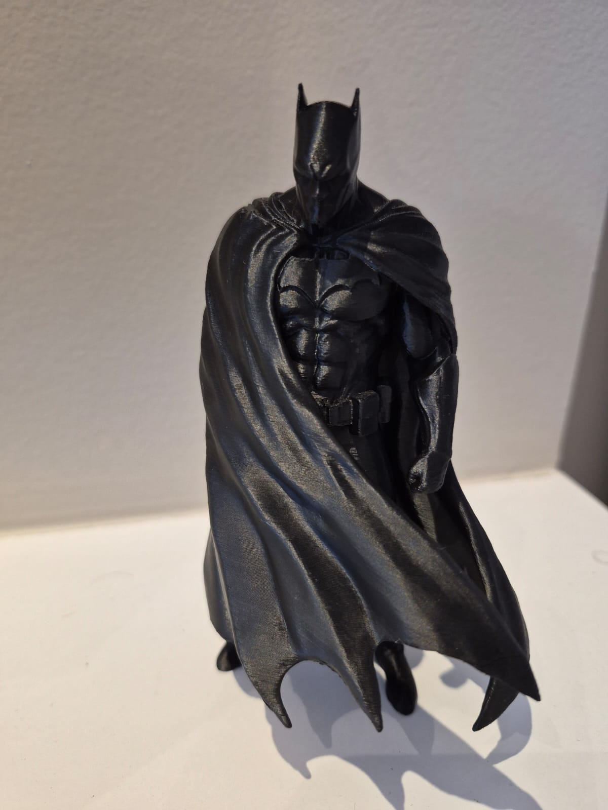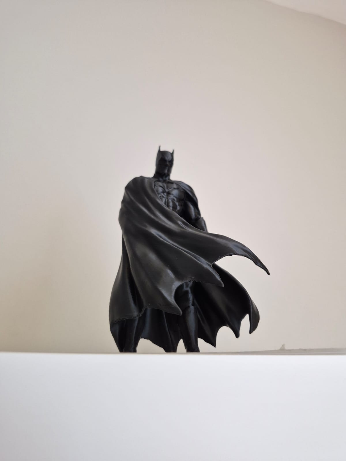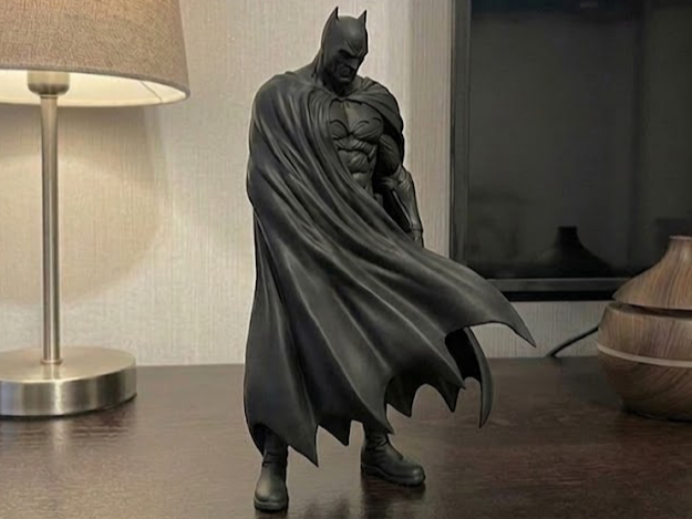 Capture a pose mais clássica do Cavaleiro das Trevas. 🦇 Este modelo detalhado retrata o Batman em um momento de meditação profunda, observando a cidade do topo de um arranha-céu.