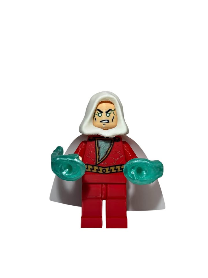 3D printed plastic Big Brick Lego Shazam. Stands around 8 inches tall.