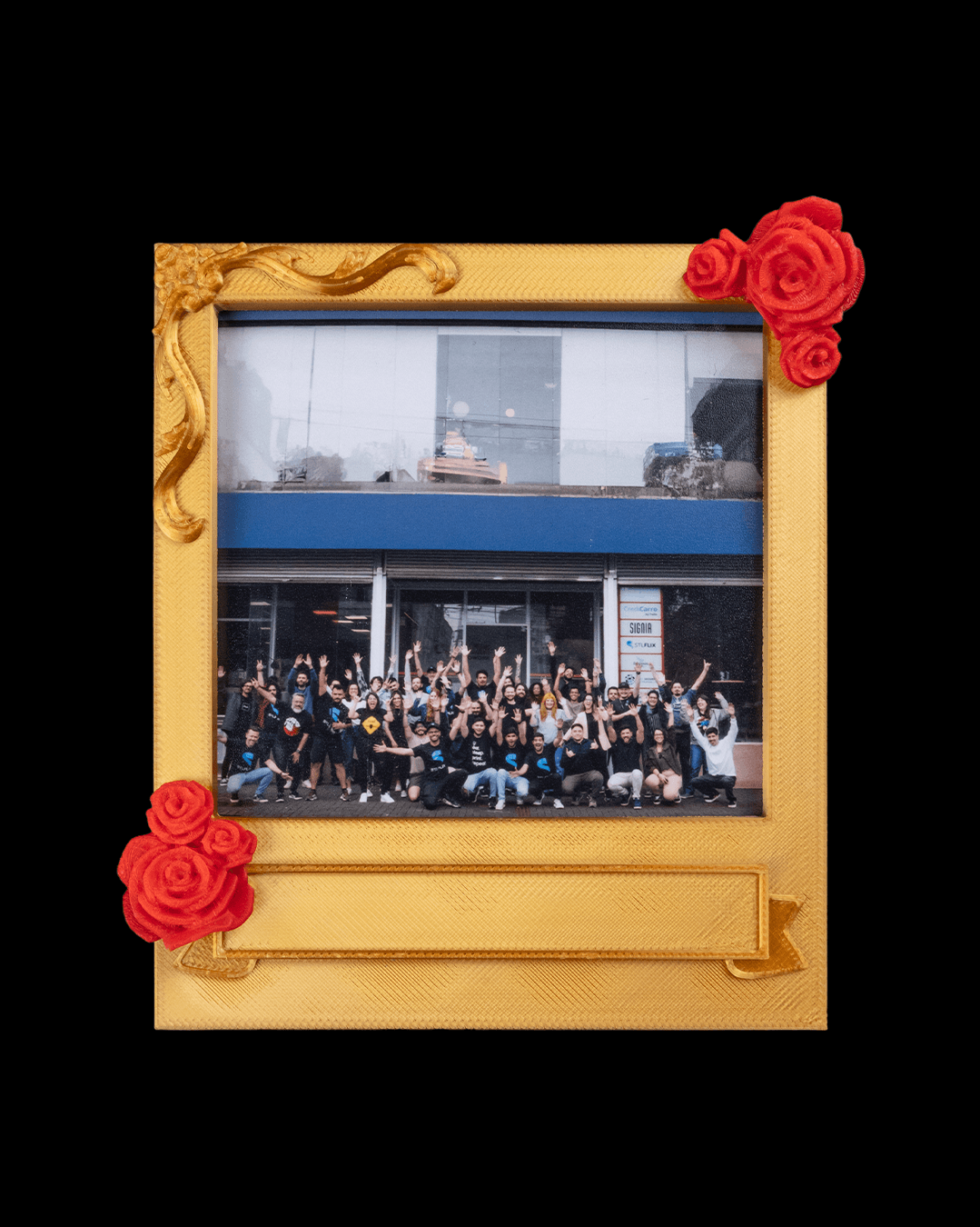 Uma moldura pequena e gentil que faz com que cada foto pareça ter se encaixado perfeitamente no lugar.