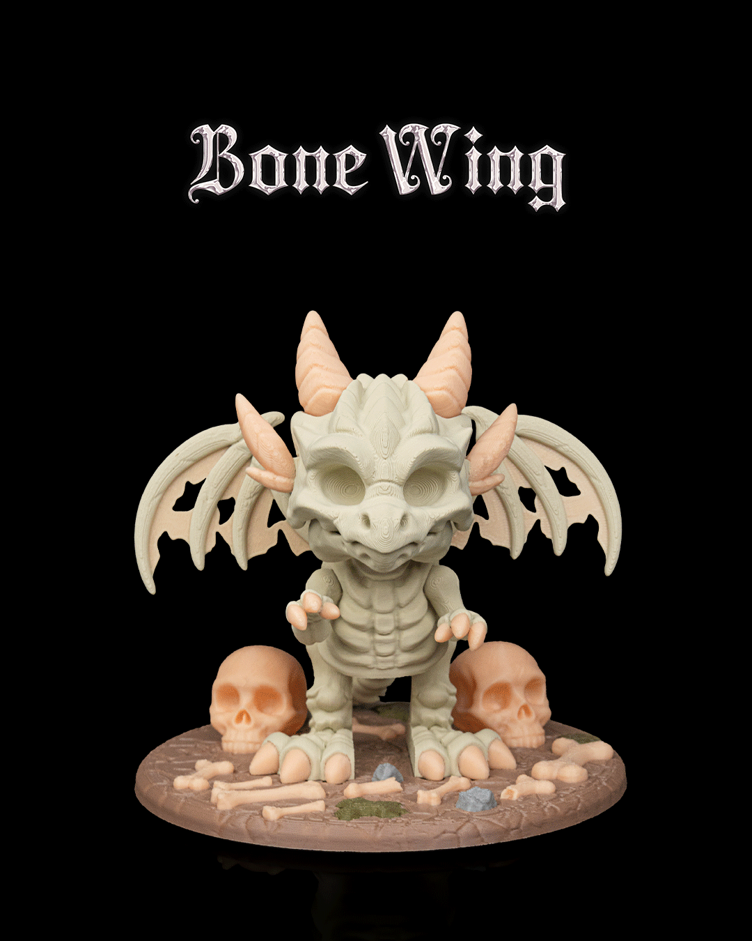 Silent as the grave, its brittle wings rattle like ancient bones as it soars through the dark, a harbinger of cold fear.