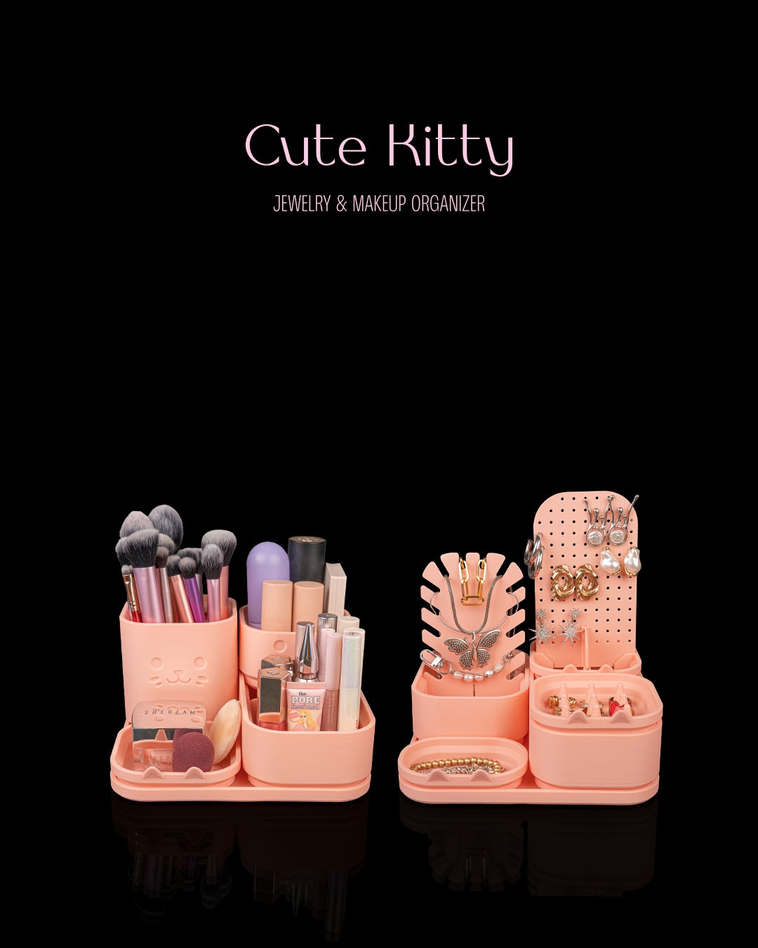 Elegant with a playful twist, the Cute Kitty Organizer blends charming personality with sleek organization. Featuring subtle cat ear details and a softly sculpted body, this organizer adds a touch of whimsy to your vanity while maintaining a polished, modern aesthetic. It’s the perfect piece for those who love a clean, stylish space—with just the right amount of personality.
