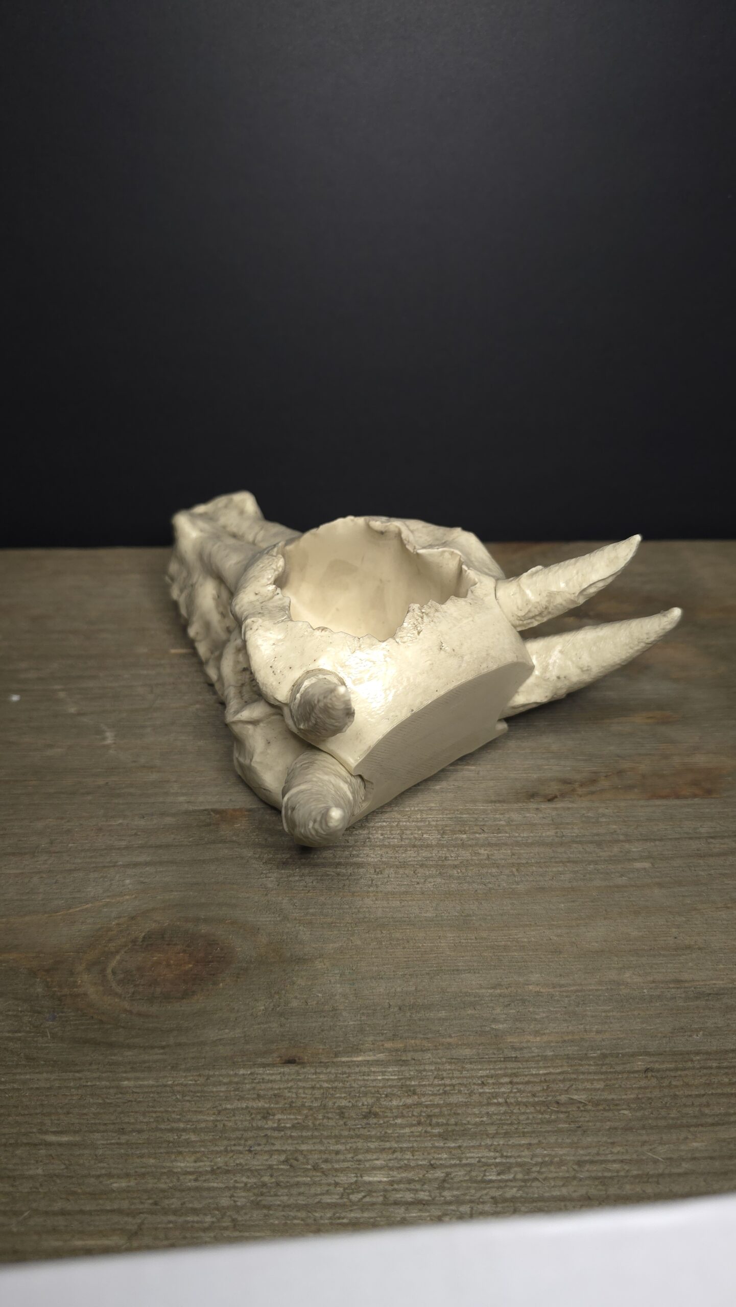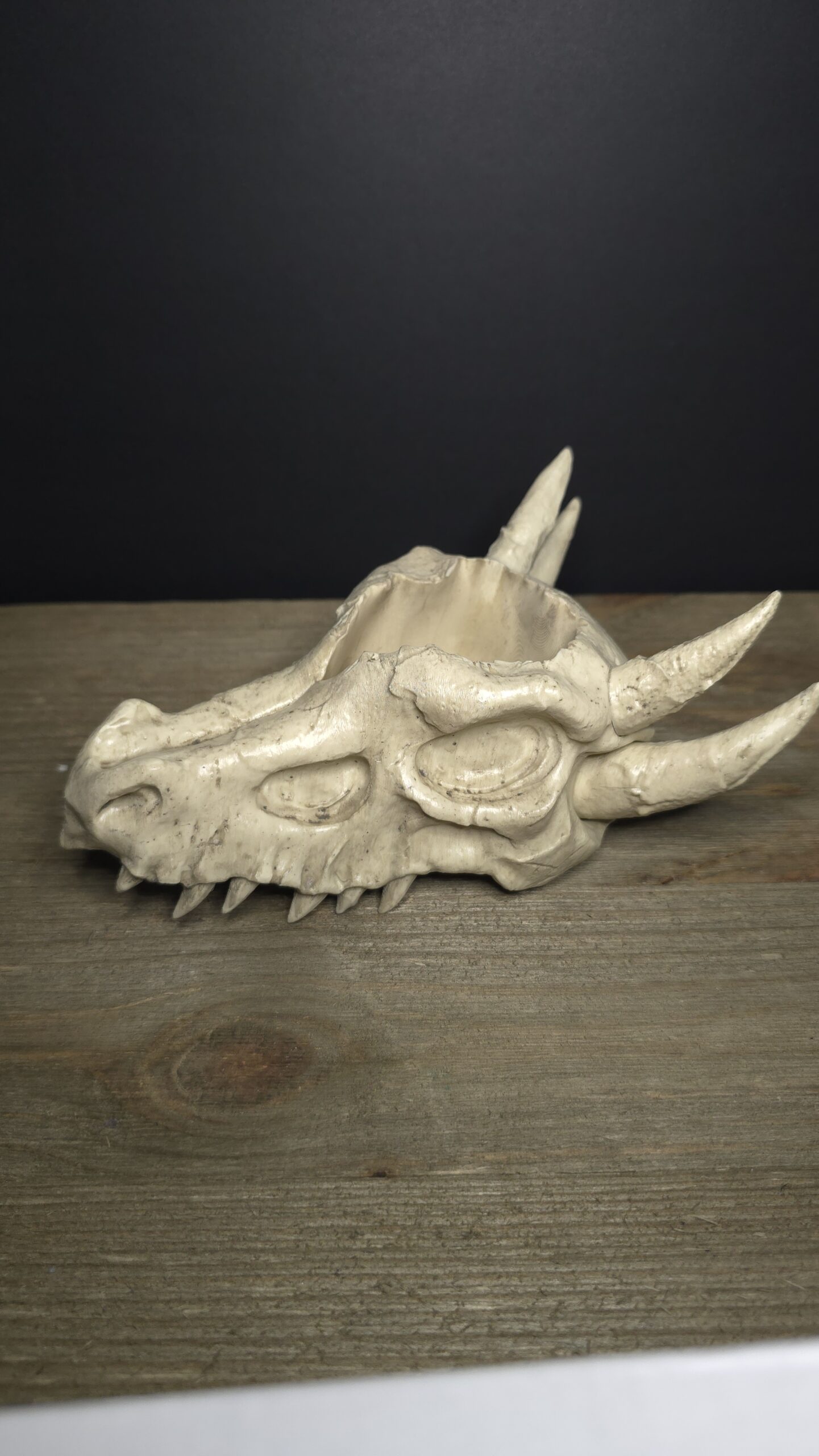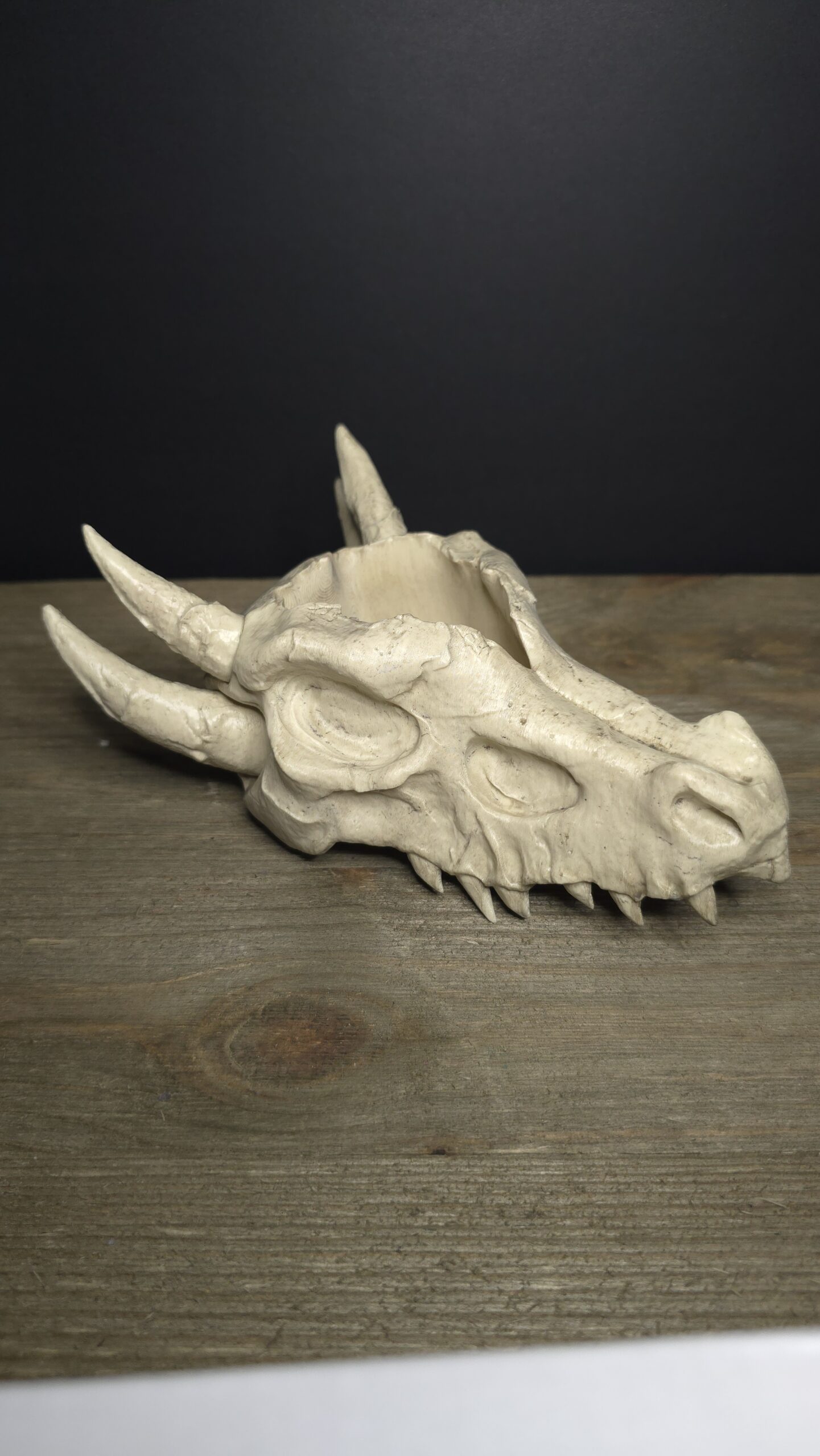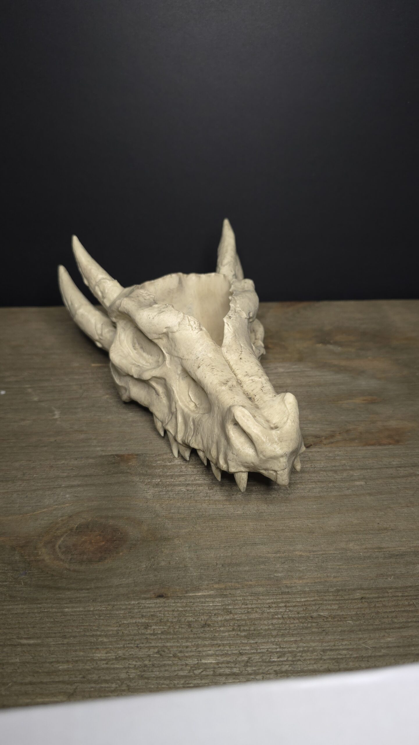 A small planter in the shape of a dragons skull, printed and given a light paintjob for more realistic affect. This Planter sits around 6 inches in length