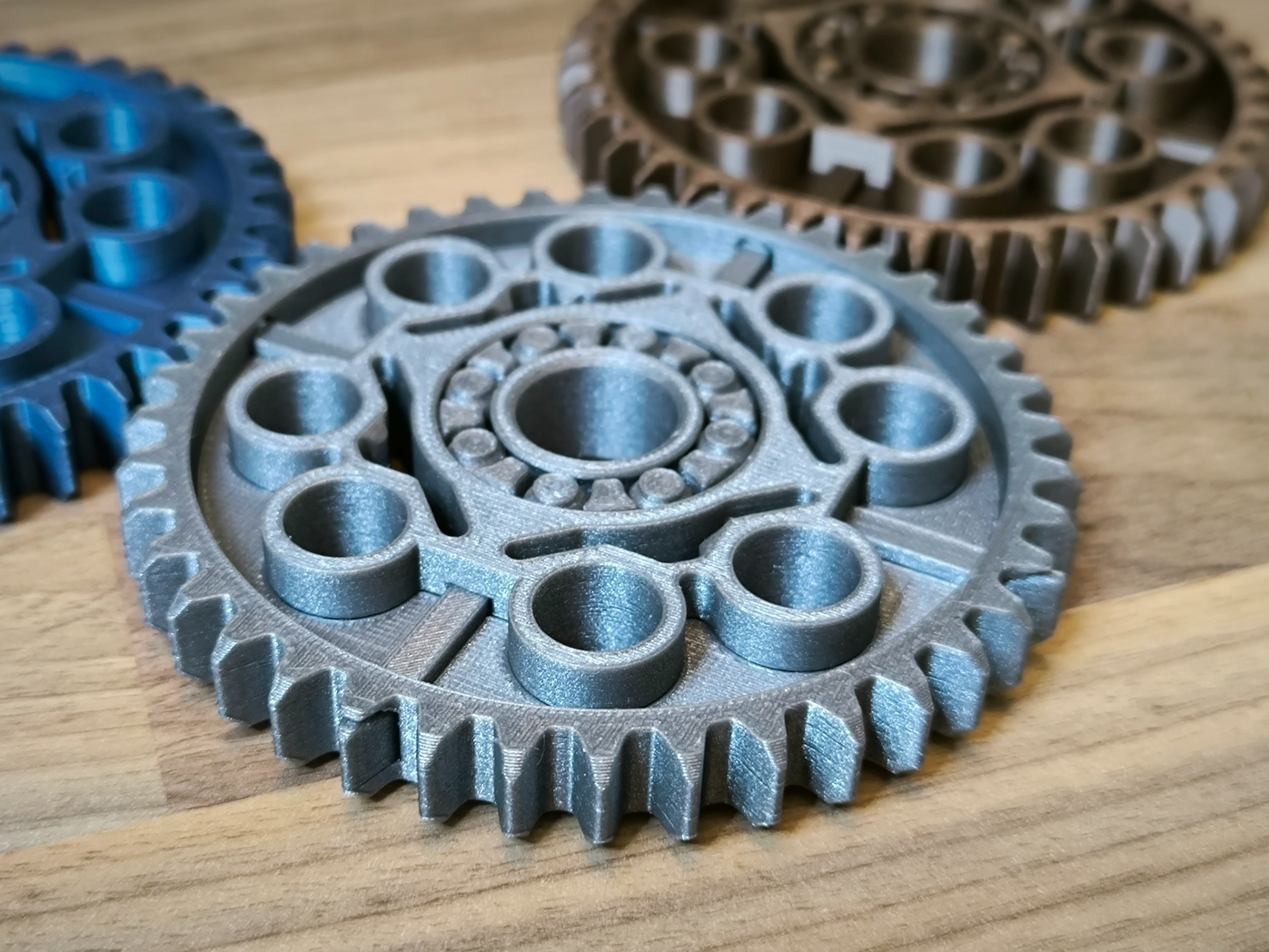 Uma engrenagem gigante de 40 dentes, transformada em um fidget spinner com rolamentos suaves.