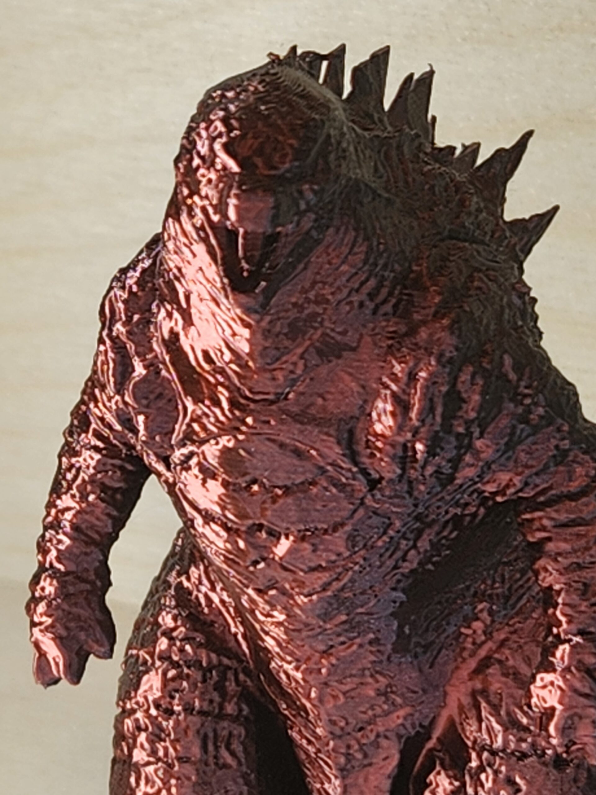 - Red and black metallic Godzilla collectible figurine.