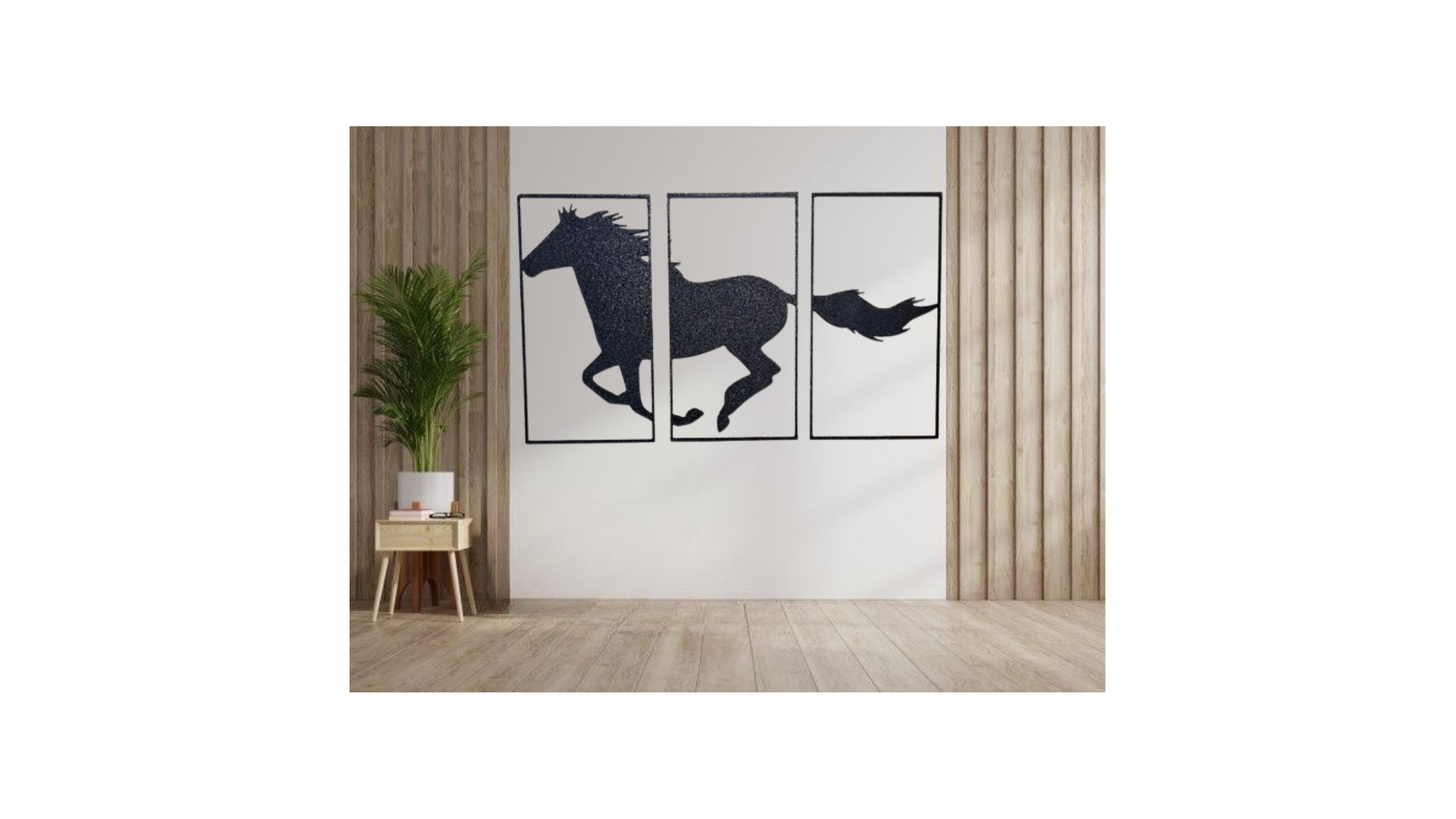 Add elegance and motion to your wall with this horse-themed sculpture, designed with graceful lines that bring a sense of speed and freedom. Its flowing silhouette makes it a striking centrepiece for any space — ideal for equestrian fans, stables, or nature-inspired interiors.