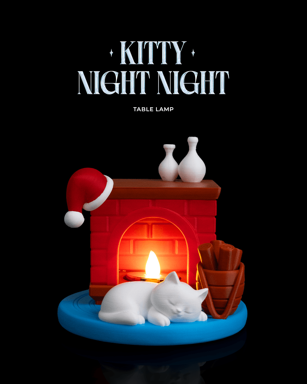 A sleepy little cat curled up under soft light, pure comfort and cuteness. Perfect for purring some peace into your Christmas nights.