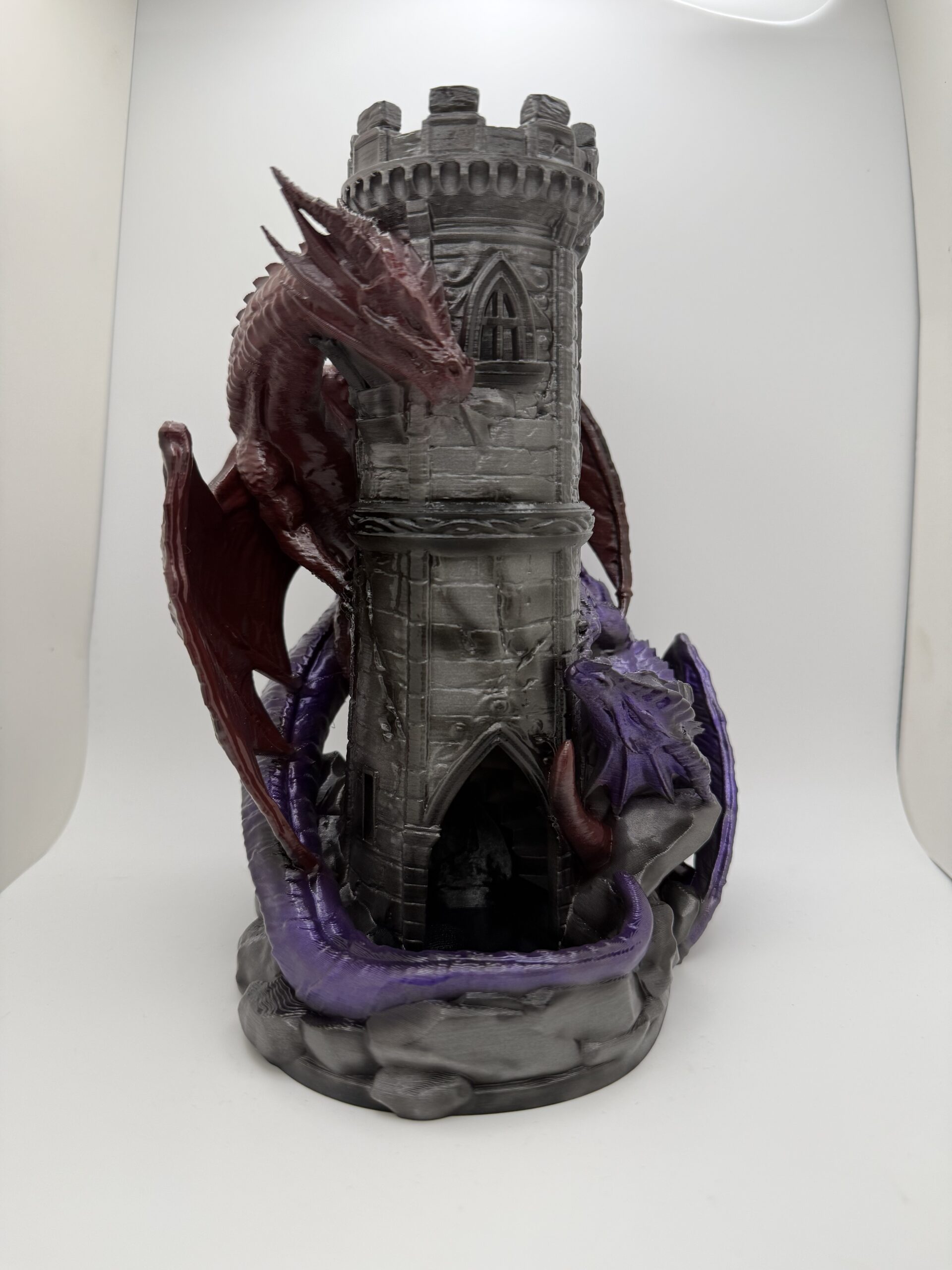Two dragons coil around the tower, guarding the path of chance. Every roll passes between them, bound to one shared outcome. Fate chooses. They just watch.