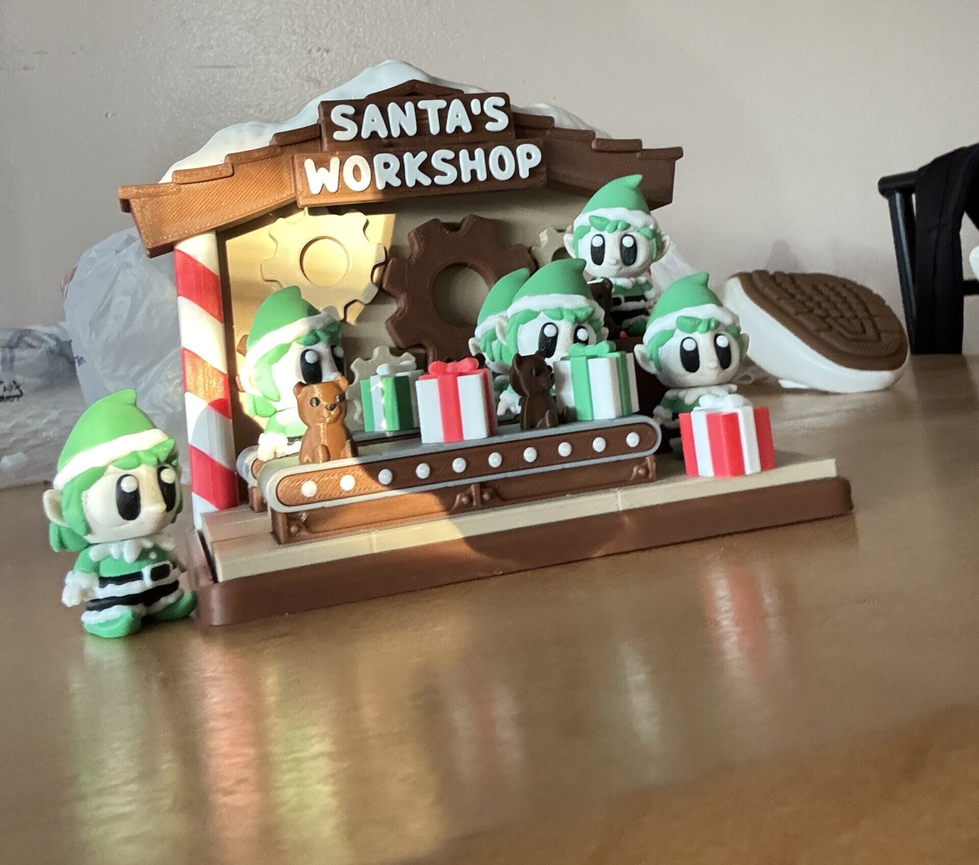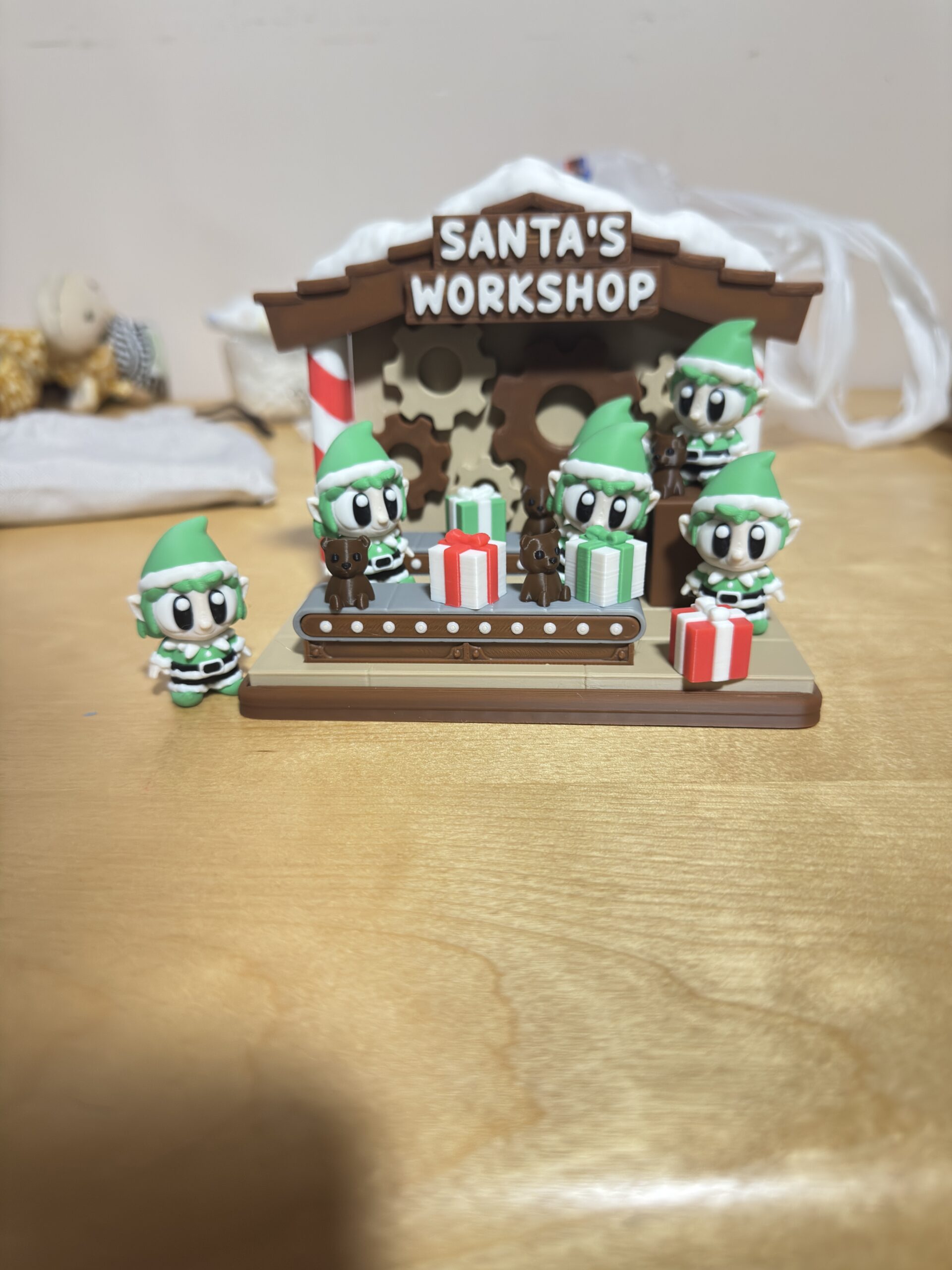 Santa’s Elves busy in Santa’s Workshop making and wrapping Gifts