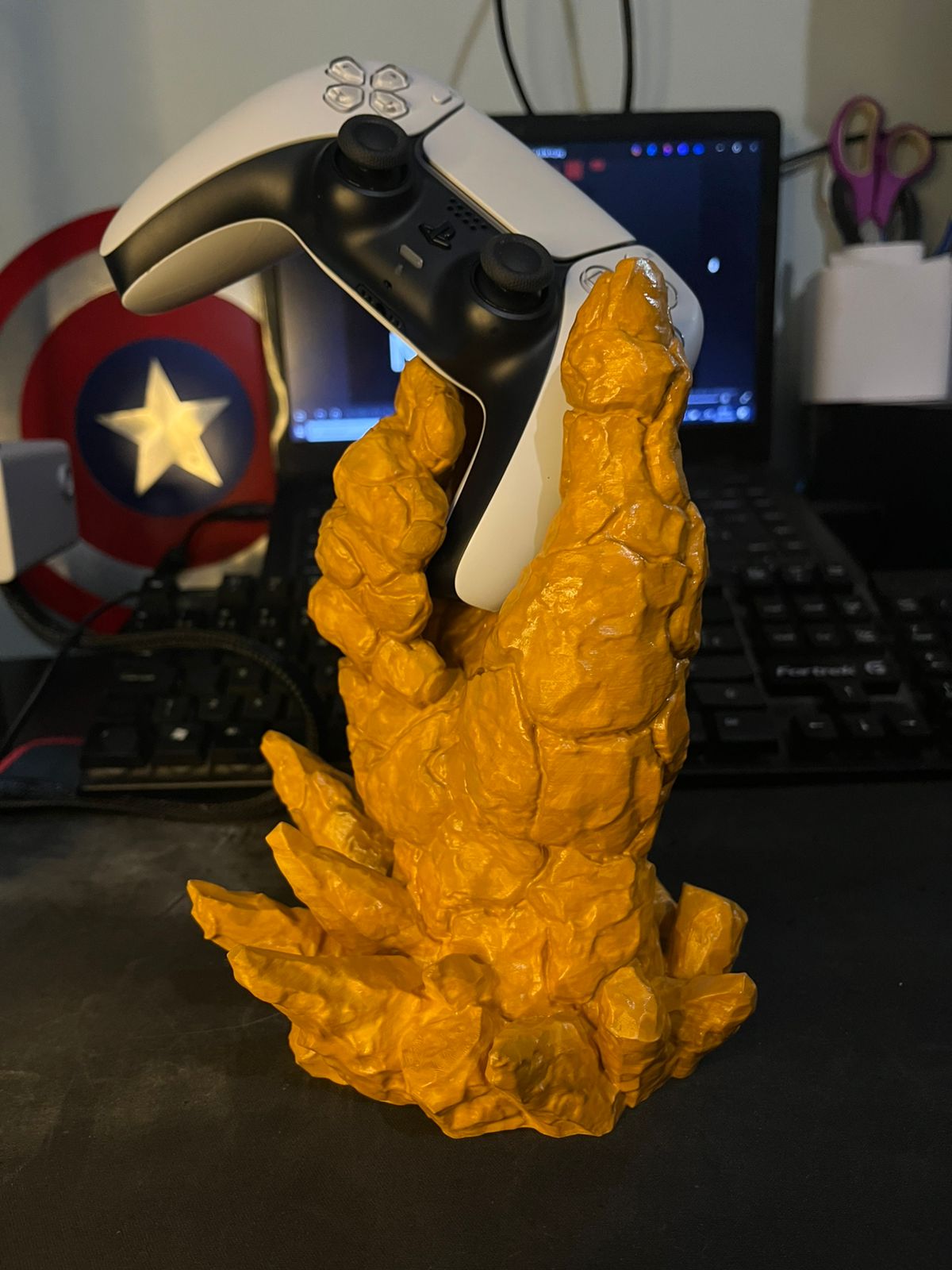 Leve seu setup para outro nível com este suporte inspirado na icônica mão do Coisa, dos Quarteto Fantástico! Uma peça cheia de personalidade, ideal para quem é fã de quadrinhos, games e decoração geek.